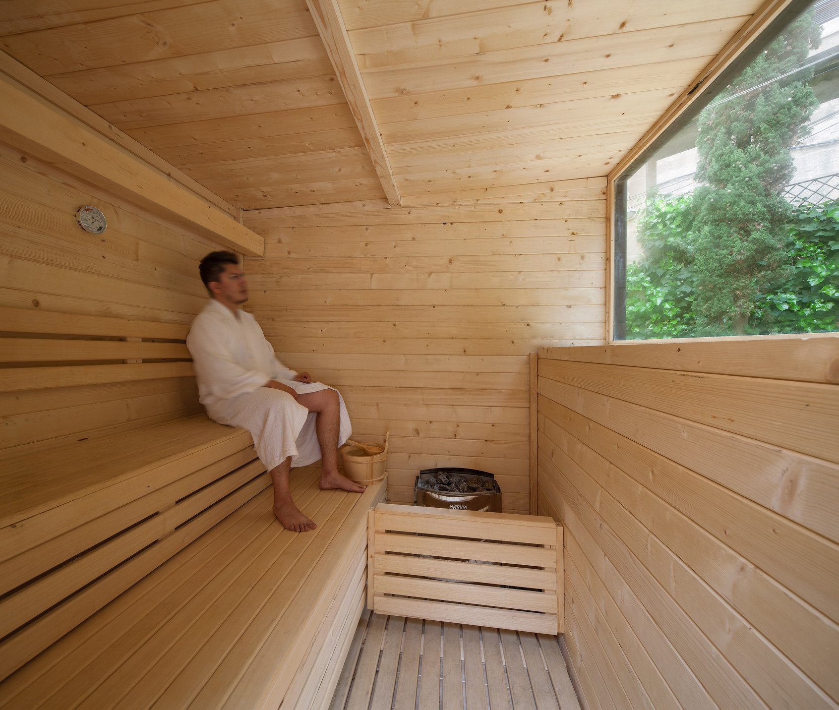 Esta sauna quiere transmitir la idea de que estos espacios no son solitarios e individuales, si no que en la cultura finlandesa se utilizan para crear vínculos y estar en sociedad. Persiguiendo esa idea de colectividad, este espacio es itinerante para que pueda ubicarse en diferentes espacios lugares y así crear comunidad y, además, puede albergar entre cinco y seis personas.
